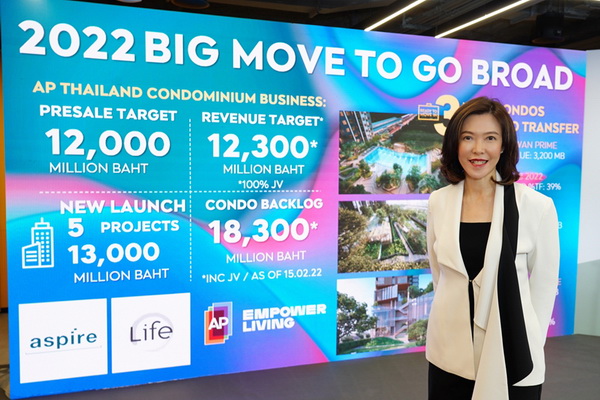 นางสาวกมลทิพย์) กล่าวต่อไปว่า “ในปีนี้บริษัทฯ มีแผนเปิดตัวคอนโดมิเนียมใหม่ทั้งหมด 5 โครงการ มูลค่ารวม 13,000 ล้านบาท เป็นการเปิดตัวในครึ่งปีแรกจำนวน 3 โครงการ มูลค่ารวม 6,800 ล้านบาท โดยเป็นการกลับมาอย่างยิ่งใหญ่ของแบรนด์ ASPIRE โฉมใหม่ โปรดักต์ไฮไลต์ของปี ที่เอพีเซ็ตมาตรฐานกระบวนการพัฒนาใหม่ทั้งหมด จากการศึกษาและถอดรหัสอินไซต์การใช้ชีวิตของกลุ่ม Young Generation ลูกค้าเป้าหมาย ที่มีการเปลี่ยนแปลงตลอด 2 ปีที่ผ่านมา หลังพบเซนติเมนท์ลูกค้าคอนโดที่เริ่มปรับตัวฟื้นกลับดีขึ้นต่อเนื่อง โดยเฉพาะลูกค้าเรียลดีมานด์ในประเทศที่ซื้อเพื่ออยู่จริงยังคงมีอยู่ สะท้อนการตอบรับที่ดีจากยอดขายสินค้าคอนโดเอพีล่าสุดกว่า1,080 ล้านบาท (15 ก.พ. 65) แม้ยังไม่มีการเปิดโครงการใหม่ หรือโตกว่า 250% เมื่อเทียบกับช่วงเดียวกันของปีที่ผ่านมา โดยแผนเดินหน้าเปิดตัว ASPIRE โฉมใหม่ในครั้งนี้ จะเป็นโครงการที่สร้างความแตกต่าง และเป็นตัวเลือกอันดับแรกของลูกค้ารุ่นใหม่ที่มองหาคอนโดใหม่บนทำเลซิตี้โซนในราคาที่คุ้มค่าจับต้องได้ เริ่มที่ 1.99 ล้านบาท”