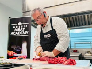 การฝึกอบรมครั้งนี้ มุ่งเน้นเพิ่มพูนความรู้ด้านเนื้อวัวและเนื้อแกะ ทั้งในด้านคุณภาพ การตัดแต่ง และการเข้าใจผู้บริโภค ครอบคลุมหัวข้อสำคัญ ได้แก่ การเข้าใจระบบผลิตและความสามารถในการตรวจสอบย้อนกลับของเนื้อแดงออสเตรเลีย เทคนิคการตัดแต่งเนื้อ (Butchery) เพื่อให้เกิดการใช้ประโยชน์สูงสุดและลดของเสีย การจัดการคุณภาพของเนื้อในกระบวนการจัดเก็บและจำหน่าย การวิเคราะห์รสสัมผัส การเปรียบเทียบเนื้อวัว แช่เย็น-แช่แข็ง-เนื้อที่ได้จากการเลี้ยงแบบต่างๆ การจัดแสดงผลิตภัณฑ์เนื้อที่เคาน์เตอร์เพื่อดึงดูดสายตา การตัดแต่งในรูปแบบใหม่ๆ และการตัดแต่งให้เหมาะสมกับเมนูอาหาร รวมถึงการเพิ่มมูลค่าชิ้นส่วนรอง อาทิ เนื้อลูกมะพร้าว(Knuckle) เนื้อเสือร้องไห้(Brisket) ฯลฯ