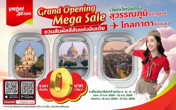 เวียตเจ็ทไทยแลนด์ เดินหน้าขยายเครือข่ายเส้นทางบินระหว่างประเทศ เปิดตัวเส้นทางบินตรง กรุงเทพฯ (สุวรรณภูมิ) – โกลกาตา ซึ่งนับเป็นเส้นทางที่สามของสายการบินฯ ที่เชื่อมต่อประเทศไทยกับประเทศอินเดีย ต่อจาก กรุงเทพฯ – มุมไบ และ ภูเก็ต – มุมไบ ตอกย้ำการขยายตลาดอินเดียที่รวดเร็วและต่อเนื่อง เริ่มให้บริการตั้งแต่วันที่ 17 พฤศจิกายน 2568 เป็นต้นไป โดยมุ่งเชื่อมโยงสองประเทศอย่างใกล้ชิด พร้อมเพิ่มทางเลือกในการเดินทางและเสริมความสะดวกสบายให้แก่ผู้โดยสาร สนับสนุนการแลกเปลี่ยนทางวัฒนธรรมและกระตุ้นการเติบโตทางเศรษฐกิจระหว่างสองประเทศ