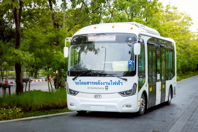 ดร.นาฬิกอติภัค แสงสนิท กรรมการผู้จัดการ บริษัท ธนารักษ์พัฒนาสินทรัพย์ จำกัด (DAD Asset Development) ผู้บริหารศูนย์ราชการเฉลิมพระเกียรติฯ ถนนแจ้งวัฒนะ เปิดเผยว่า DAD ได้เริ่มใช้ EV Shuttle Bus ให้บริการรับ-ส่งประชาชนและเจ้าหน้าที่ภายในศูนย์ราชการเฉลิมพระเกียรติฯ มาเกือบ 2 ปี ทยอยเปิดเส้นทางให้บริการ เพื่อให้ครอบคลุมทุกพื้นที่ที่เป็นจุดต่อเชื่อมกับรถสาธารณะ โดย EV Shuttle Bus ของศูนย์ราชการเฉลิมพระเกียรติฯ ใช้พลังงานสะอาดที่มาจากแหล่งผลิตคือ แผงโซล่าร์เซลล์ ที่ติดตั้งบนอาคารจอดรถ D สามารถผลิตไฟฟ้าได้กว่า 74,164 กิโลวัตต์ต่อเดือน เพียงพอสำหรับระบบไฟส่องสว่างภายในอาคาร และการชาร์จแบตเตอรี่ของรถ EV ทุกคัน จึงถือเป็นรถที่ใช้พลังงานสะอาดได้ 100%