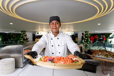 “Sawasdee Chaophraya Cruise” ยังมีบริการอาหารค่ำแบบบุฟเฟ่ต์นานาชาติ จัดเต็มด้วยอาหารซีฟู้ดสดใหม่ทุกวัน อาทิ กุ้งแม่น้ำเผา หอยชิลีนึ่ง หอยเชลล์ ปลาแซลมอน รวมถึงเมนูของหวานนานาชนิด ให้ผู้โดยสารได้อิ่มอร่อยไปพร้อมกับการล่องเรือ นอกจากนี้ ยังมีการแสดงนาฏศิลป์ไทย โขนรามเกียรติ์ และการขับกล่อมบทเพลงโดยนักร้องมืออาชีพ ที่จะทำให้ค่ำคืนของคุณและคนที่คุณรักเต็มไปด้วยความประทับใจไม่รู้ลืม