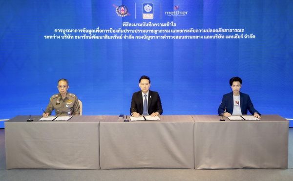 เมื่อวันที่ 28 สิงหาคม 2568 บริษัท ธนารักษ์พัฒนาสินทรัพย์ จำกัด (DAD Asset Development) ร่วมกับกองบัญชาการตำรวจสอบสวนกลาง (บช.ก.) และบริษัท เมทเธียร์ จำกัด ลงนามบันทึกความเข้าใจ (MOU) ว่าด้วยความร่วมมือด้านการบูรณาการข้อมูลเพื่อป้องกันและปราบปรามอาชญากรรม พร้อมยกระดับมาตรการรักษาความปลอดภัยภายในศูนย์ราชการเฉลิมพระเกียรติ ๘๐ พรรษา ๕ ธันวาคม ๒๕๕๐ ณ อาคารธนพิพัฒน์  ศูนย์ราชการเฉลิมพระเกียรติฯ ถนนแจ้งวัฒนะ