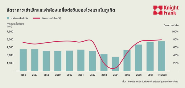 คาร์ลอส มาร์ติเนซ ผู้อำนวยการฝ่ายวิจัยและที่ปรึกษาตลาดอสังหาริมทรัพย์ บริษัท ไนท์แฟรงค์ ชาร์ตเตอร์ (ประเทศไทย) จำกัด เสริมว่า “ในช่วงครึ่งแรกของปี 2568 ตลาดโรงแรมหลักของประเทศไทยทั้งสองแห่งมีทิศทางที่แตกต่างกัน กรุงเทพฯ เผชิญกับอัตราการเข้าพักที่ลดลง แม้จำนวนนักท่องเที่ยวต่างชาติยังคงทรงตัวและค่าเฉลี่ยรายได้ต่อห้อง (ADR) ปรับเพิ่มขึ้นเพียงเล็กน้อย ขณะที่ภูเก็ตกลับมีการเติบโตที่แข็งแกร่งกว่า โดยมีอัตราการเข้าพักและค่าเฉลี่ยรายได้ต่อห้องที่สูงขึ้นจากอุปสงค์นักท่องเที่ยวต่างชาติที่ยังคงแข็งแรง