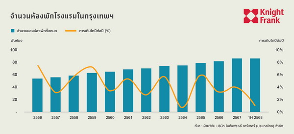 โรงแรมใหม่หลายแห่งตั้งอยู่ในย่านเมืองที่เกิดใหม่หรือได้รับการพัฒนาใหม่ ส่งผลให้ตลาดโรงแรมในกรุงเทพฯ มีการกระจายตัวมากขึ้น แบรนด์ในประเทศ เช่น เดอะควอเตอร์ และควีนส์แลนด์ ยังคงขยายตัวเชิงรุกในกลุ่มระดับกลางถึงบน ขณะที่เชนโรงแรมนานาชาติ เช่น เรดิสัน และโฟร์พอยท์ เพิ่มการลงทุนในตลาด สะท้อนถึงความเชื่อมั่นต่อศักยภาพในระยะยาวของกรุงเทพฯ