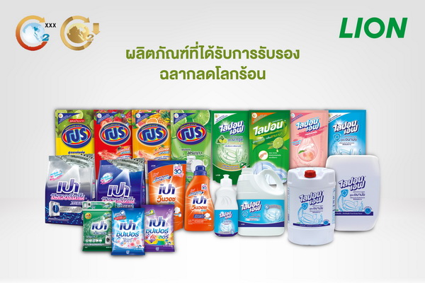 ปัจจุบัน ไลอ้อนมีผลิตภัณฑ์กว่า 17 SKUs ที่ได้รับฉลากลดโลกร้อน อาทิ ไลปอนเอฟ สูตรอนามัย ไลปอนเอฟ สูตรมะกรูด ไลปอนเอฟ เจแปนนีสพีช และไลปอน กลิ่นชามะนาว เป็นต้น ในรูปแบบ “ถุงเติมรีฟิล” และยังเป็นรายแรกในประเทศไทยที่ได้รับฉลากลดโลกร้อน (Carbon Footprint Reduction) ในกลุ่มผลิตภัณฑ์น้ำยาล้างจาน อย่างต่อเนื่อง ตั้งแต่ปี 2014 จนถึง ปัจจุบัน