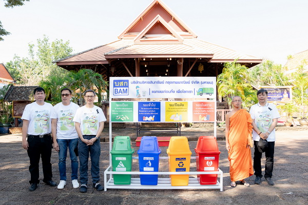 นายวีรเวช ศิริชาติไชย รองประธานเจ้าหน้าที่บริหาร สายสนับสนุนองค์กร บริษัทบริหารสินทรัพย์ กรุงเทพพาณิชย์ จำกัด (มหาชน) หรือ BAM พร้อมด้วย นายสันธิษณ์ วัฒนกุล ประธานเจ้าหน้าที่บริหาร บริษัท บริหารสินทรัพย์อารีย์ จำกัด หรือ ARI ร่วมถวายชุดโครงเหล็กพร้อมถังขยะแยกประเภท โดยมี พระมหาสุนทร สุนฺทโร รองเจ้าอาวาส วัดมหาธาตุวรวิหาร จ.ราชบุรี และเจ้าคณะ อำเภอเมืองราชบุรี เป็นผู้รับมอบ เพื่อรณรงค์ปลูกฝังให้พุทธศาสนิกชนเกิดจิตสำนึกในการรักษาสิ่งแวดล้อมควบคู่กับจรรโลงพระพุทธศาสนา ซึ่งเป็นส่วนหนึ่งของกิจกรรมลูกค้าสัมพันธ์ ฝ่ายสื่อสารองค์กร ภายใต้ชื่องาน “ BAM Fine Day @ Ratchaburi ”