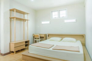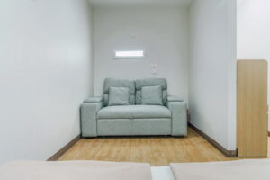 อีกหนึ่งหัวใจสำคัญของการปรับปรุงห้องพักบ้านแมค รพ.เด็ก คือการให้ความสำคัญกับสุขภาพของผู้ใช้งานและคุณภาพอากาศภายในห้อง ผ่านการเลือกใช้เฟอร์นิเจอร์ที่ผลิตจากไม้ มาตรฐาน E1 ซึ่งเป็นมาตรฐานสากลด้านการควบคุมการปล่อยสารฟอร์มัลดีไฮด์จากผลิตภัณฑ์ไม้ เฟอร์นิเจอร์ที่นำมาใช้มีปริมาณสารฟอร์มัลดีไฮด์ต่ำเพียง 0.005% ช่วยลดการระเหยของสารเคมีภายในอาคาร ส่งผลให้บรรยากาศภายในห้องพักปลอดโปร่ง ลดกลิ่นฉุน ลดอาการแสบตาและการระคายเคืองผิวหนัง พร้อมช่วยลดความเสี่ยงด้านโรคภูมิแพ้และระบบทางเดินหายใจ เหมาะสมกับพื้นที่ที่มีเด็ก ผู้ป่วย และครอบครัวที่ต้องพักอาศัยเป็นเวลานาน