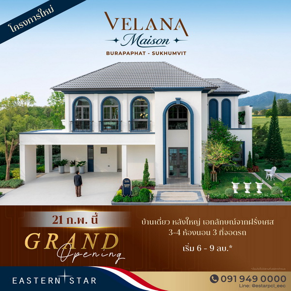 ทั้งนี้ โครงการ Velana Maison บูรพาพัฒน์ – สุขุมวิท เปิดให้ลงทะเบียนรับส่วนลด 100,000 บาท และนัดหมายเข้าชมโครงการ โทรศัพท์ 091-949-0000 โดยจะจัดงาน Grand Opening อย่างเป็นทางการในวันที่ 21 กุมภาพันธ์นี้ เป็นต้นไป หรือลูกค้าที่สนใจเยี่ยมชมโครงการสามารถดูรายละเอียดเพิ่มเติมได้ที่ เว็บไซต์ www.estarpcl.com หรือสอบถามทาง LINE Official: @estarpcl