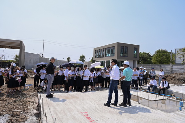 และการเปิดไซต์ก่อสร้างจริงในครั้งนี้จึงเป็นมากกว่าการเยี่ยมชมทั่วไป แต่เป็นการเชื่อมโยงองค์ความรู้จากห้องเรียนสู่ประสบการณ์ภาคสนาม ให้นิสิตได้เห็นภาพกระบวนการทำงานจริง เข้าใจรายละเอียดเชิงโครงสร้างและวัสดุ รวมถึงการบูรณาการเทคโนโลยีพลังงานสะอาดเข้ากับงานสถาปัตยกรรมอย่างเป็นรูปธรรม ซึ่งสอดคล้องกับทิศทางการพัฒนาอสังหาริมทรัพย์ยุคใหม่ที่ต้องคำนึงถึงผู้อยู่อาศัย สิ่งแวดล้อม และการใช้พลังงานอย่างมีประสิทธิภาพควบคู่กัน