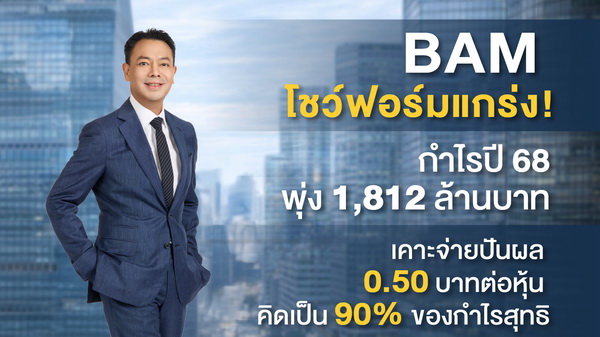 ดร.รักษ์ วรกิจโภคาทร ประธานเจ้าหน้าที่บริหาร บริษัทบริหารสินทรัพย์ กรุงเทพพาณิชย์ จำกัด (มหาชน) หรือ BAM เปิดเผยถึงผลการดำเนินงานประจำปี 2568 ว่ามีกำไรสุทธิ 1,812 ล้านบาท เพิ่มขึ้น 13% จากปีก่อน ซึ่งสะท้อนประสิทธิภาพในการบริหารจัดการสินทรัพย์และการดำเนินธุรกิจอย่างรอบคอบภายใต้ภาวะเศรษฐกิจที่มีความท้าทาย โดยในที่ประชุมคณะกรรมการบริษัทฯ มีมติเสนอจ่ายเงินปันผลในอัตรา 0.50 บาทต่อหุ้น คิดเป็นประมาณ 90% ของกำไรสุทธิประจำปี เพื่อพิจารณาอนุมัติจากที่ประชุมผู้ถือหุ้น สะท้อนนโยบายการจ่ายผลตอบแทนที่เหมาะสม ต่อเนื่องและสร้างความเชื่อมั่นให้แก่ผู้ถือหุ้น